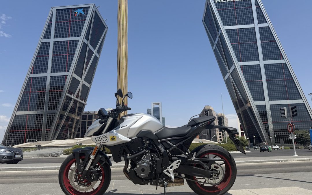 El aspecto de la 800 S es futurista de formas afiladas y agresivas, Pequeña, corta, muy manejable, no intimida, al contrario, provoca a divertirte desde el primer momento y a salir a dominar las calles. He tenido la oportunidad de convivir durante mas de tres semanas con esta moto y por tanto la he usado en todo tipo de condiciones, desde las mas lógicas para las que esta creada, la ciudad y sus alrededores, hasta largos viajes por autovías y por supuesto centenares de kilómetros por carreteras de curvas. En todos los casos excepto las autopistas, me lo he pasado muy bien, siempre con un control total de la moto que es noble y fácil. Bien excepto por las autopistas / autovías en las que esta fuera de su ambiente. La falta de carenado, cúpula, ni tan siquiera una pequeña pantalla me permitieron que no se escapara ni un solo mosquito y todos fueran directamente a mi casco y mi chaqueta. No es una moto para viajar, Su posición y ergonomía no es incomoda, pero tampoco especialmente cómoda, no es su ambiente y nadie se compraría esta moto para viajar y mucho menos si piensas llevar acompañante pues en cuanto mire las dimensiones y posición del asiento trasero te dirá que no piensa acompañante mas allá del bar de la esquina. A cambio cuando te metes en tráfico urbano o por retorcidas carreteras de montaña disfrutaras muchisimo. No tiene una potencia exagerada pero más que suficiente ( 83 CV ) que se aplican de forma muy noble a cualquier régimen de giro del motor. Muy aprovechable su zona media y no hay que buscar la zona alta del cuenta vueltas para sentirte a gusto. El decalaje de este bicilíndrico vertical de 270 grados ofrece unas pulsaciones y tacto similar  al de la V Strom anterior, nombre con el que se denomina a las mismas motos de Suzuki de estilo trail nuevas de media cilindrada, aunque nada tengan que ver en su configuración de motor. La marca V Strom gano popularidad y férreos adeptos y se mantiene aunque ya sus motores no sean en V.