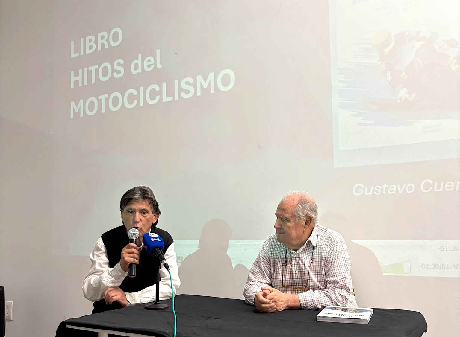 Gustavo Cuervo y Valentin Requena presentación libro, Hitos del Motociclismo.