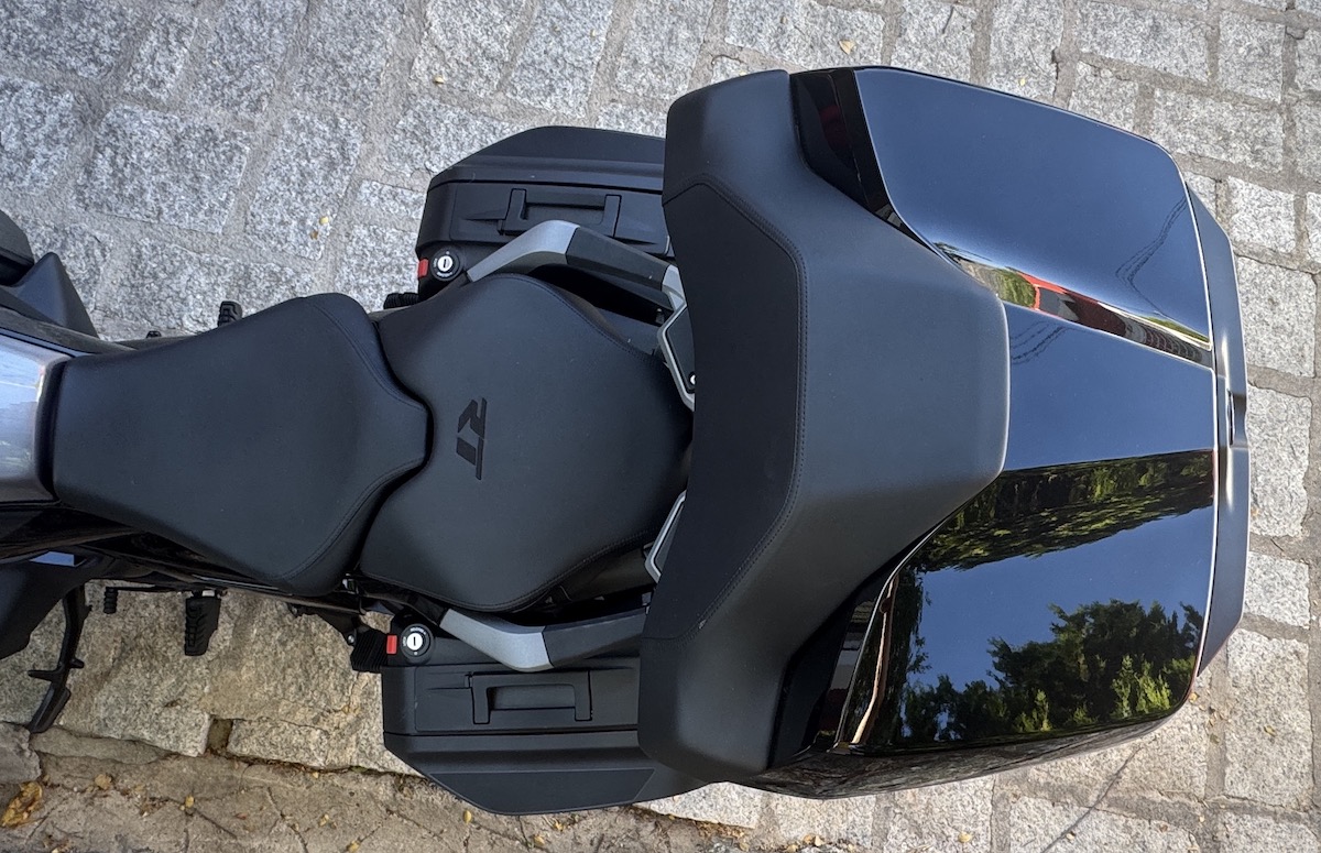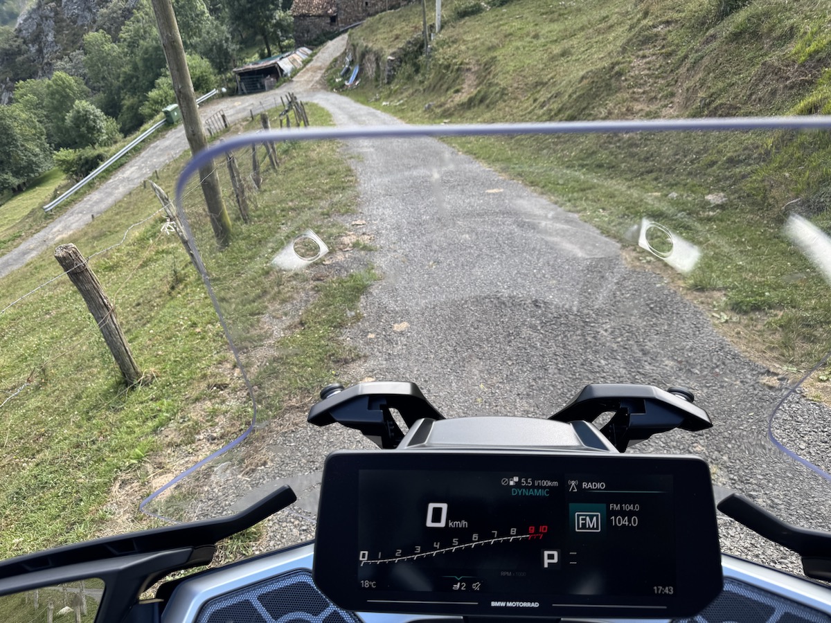 Amanece y el inspector se levanta temprano para aprovechar este ultimo gran día de purebas. Las humedades embadurnan los valles astures, El dia seraá bueno, con perfectas temperaturas hasta que de regreso a los llanos de Castilla vuelvan a subir. Carga el ligero equipaje, y le sobra con el generoso top case y las maletas a menos de la mitad por distribuir pesos, aunque unos pocos kilos no interfieran nada en un conjunto que de partida ya suma 281 klios. Las maletas son muy funcionales, se olvidan los complicados pasos de las tradicionales maletas de BMW, con estas de completamente nuevo diseño fabricadas SHAD, marca española perteneciente al grupo NAD, que cuenta con mas de cincuenta años produciendo accesorios para las mas prestigiosas marcas de motos. Ademas del cierre centralizado son muy fáciles de usar tanto para ponerlas en la moto como para abrirlas y como se dice muy intiutívas. Permiten aumentar mucho su capacidad mediante una rosca interior de accionamiento manual y dejan bastante espacio libre para el pasajero ademas de que con su forma aerodinámica no provocan turbulencias a altas velocidades. Una de ellas cuenta con toma USB para ir cargando tus equipos ademas del mini usb de la guantera sobre deposito. Otra de las novedades son los paneles laterales que se pueden desplazar manualmente hacia arriba abriendo canales verticales por los que circula el aire hacia le cuerpo del conductor cuando hace mucho calor. Es otro detalle más que se une al excelente diseño del conjunto del carenado. Aunque no lo probé con lluvia, solo unas gotas de un chubasco estoy seguro que se puede viajar bajo la lluvia sin apenas mojarte nada, siempre que estes en marcha claro.
