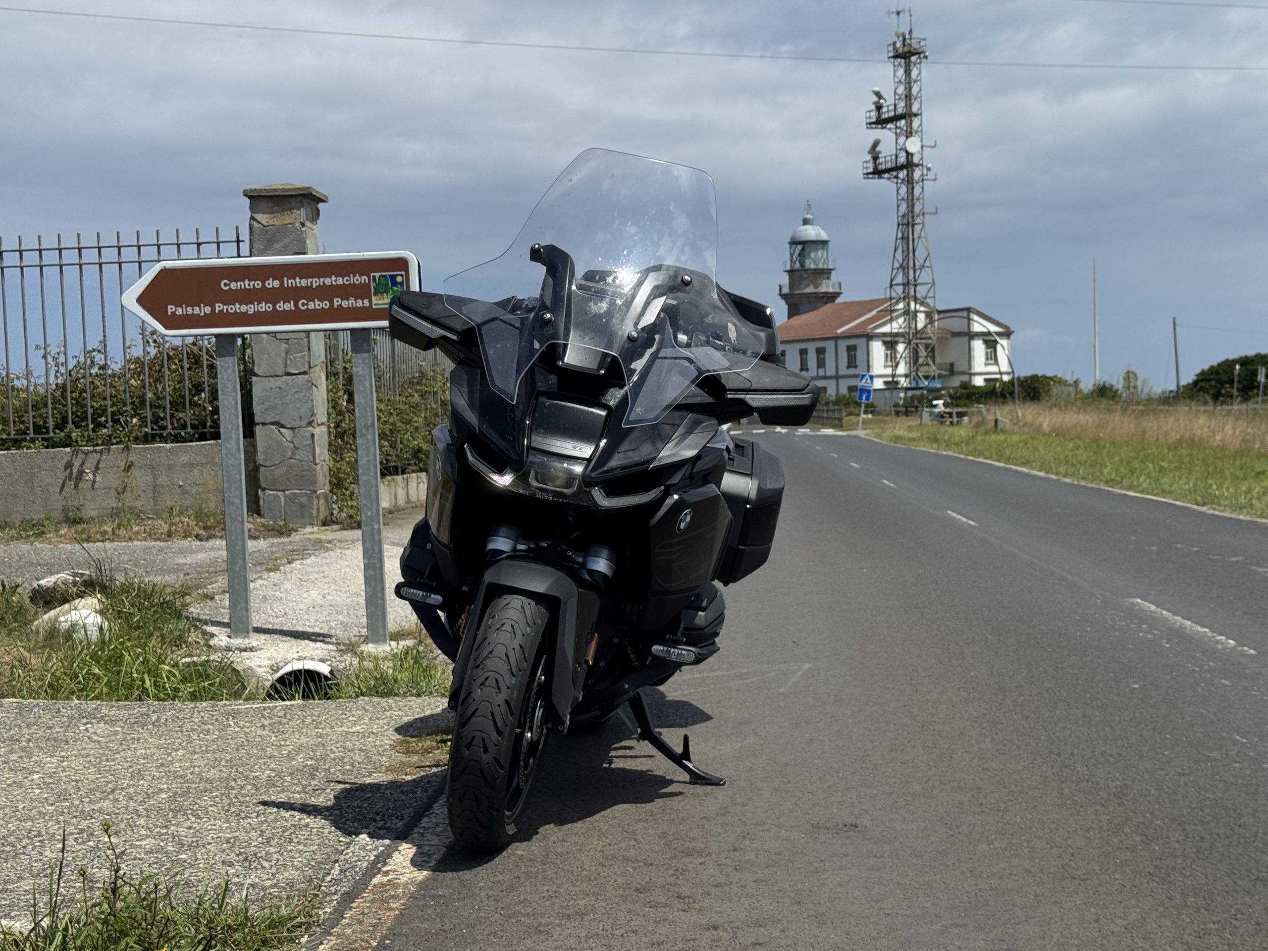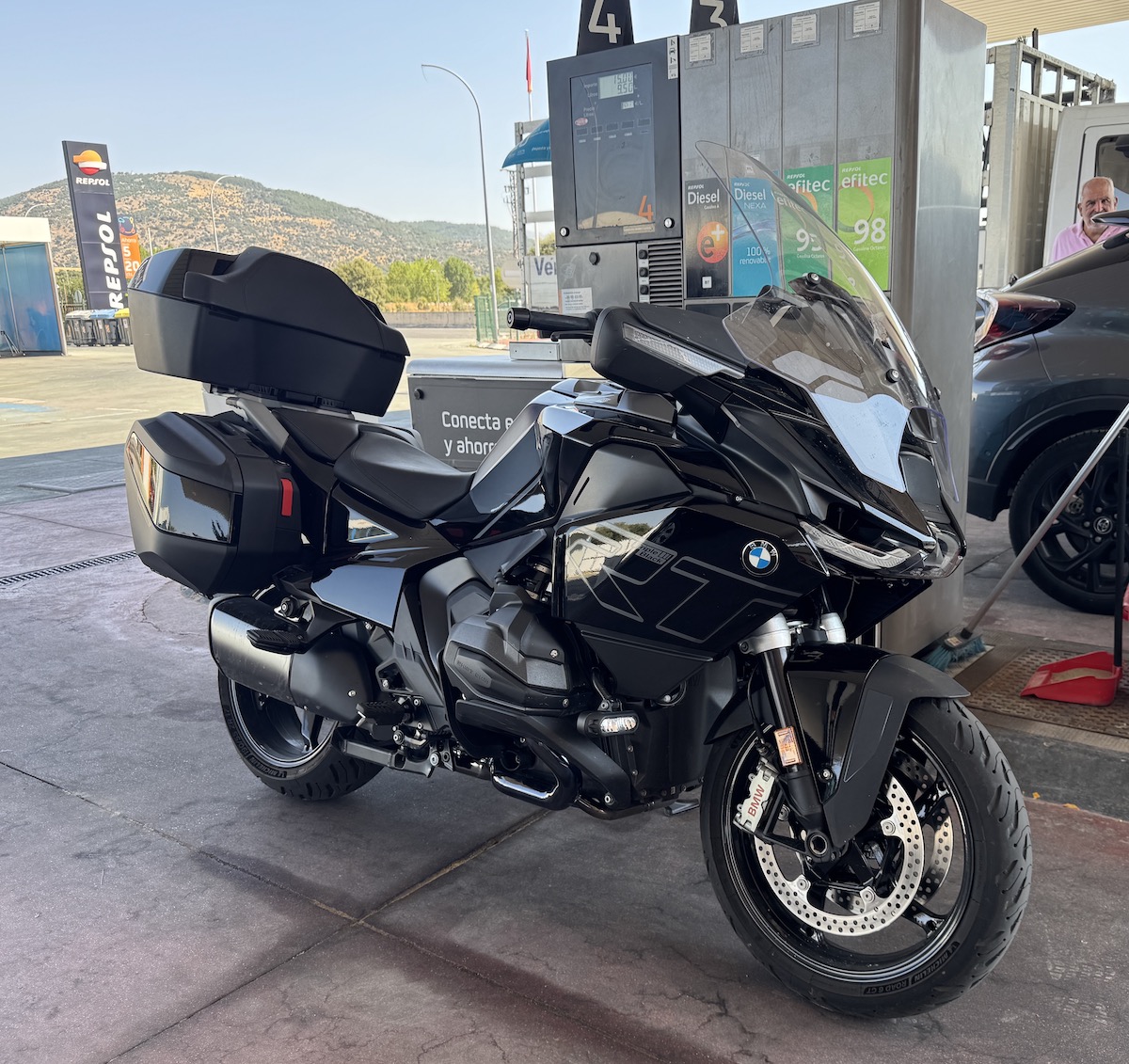 Vuelvo a atravesar mi muy bien conocido el Puerto de Navacerrada en una oscura noche. Las conocidas como siete revuletas son pan comido comparadas con las estrechas y pendiente herraduras de Casielles. La iluminacion adaptativa es fantástica, la retroiluminacion de las piñas me obsesiona y busco con más fallos que aciertos los cambios de funciones al tacto. Es toy a punto de terminar la degustación más exquisita que jamas probé de una moto touring. En el conocido descenso empiezo a hacer balance. La BMW R 1300 RT ha dado un paso de gigante. No tiene nada que ver con su anterior versión la 1250 RT. Todo es nuevo en esta y todo funciona asombrosamente bien. La ergonómica posición de conducción, la difícilmente superable protección aerodinámica, la tecnología de ultima generación que actúa sobre todos los elementos de la motocicleta… Un vistazo al consumo medio durante todo el viaje que marca 5,1 km/100 km es muy ajustado para una moto tan pesada y con tanta superficie frontal con la que no me he cortado nada en apretar el gas en bastantes ocasiones. Si apelativos una moto touring para viajar en primera clase.