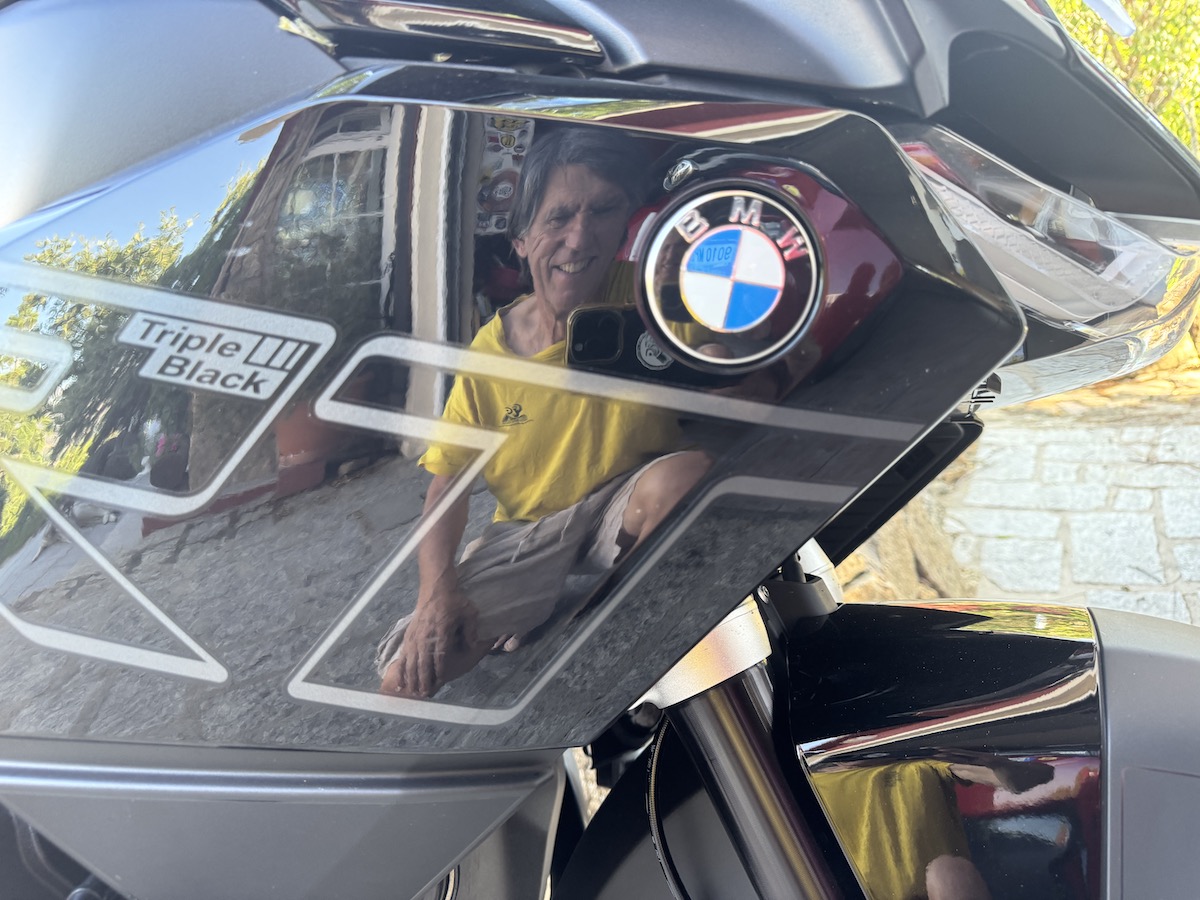 El inspector se prepara para acometer el postre. Para, completa el combustible y espera unos minutos a que la noche sea completa. Esos momentos difusos en que la luz del atardecer se mezcla con la del faro son los que para el inspector ofrecen una vision mas confusa. Mejor noche total que a medias. Continua ya en la negrura de la autovía en dirección a Segovia. La iluminación es prodigiosa, por fin una moto ilumina la ruta como si fuera un moderno automóvil. El sistema Headlight Pro con la luz de giro garantiza una iluminación óptima independientemente de las curvas. la iluminacion adaptativa adjusta automáticamente la distribución de la luz a la situación de conducción específica. A bajas velocidades la luz ilumina de una forma especialmente amplia, en la conducción por carretera, la luz de cruce se focaliza más en la distancia y se vuelve más estrecha, mas concentrada, aun siendo más ancha de lo normal. En la conducción por autopista, el haz luminoso abarca una mayor distancia hacia delante, a la vez que se estrecha aún más para guiar la mirada hacia la lejanía. Todo esto muy bien pero…. ¡no se ven los mandos de las piñas, no están retroiluminados!. Tan solo los cuatro botones del lado izquierdo tienen luz propia. El manillar esta mas negro que la boca de un lobo. No sé cual es el motivo, supongo que sera de peso para que los mandos de las piñas no tengan iluminacion, algo que ya ofrecen hasta las mas económicas motos chinas. No debe ser fácil por algún motivo que desconozco pero en verdad que es un tema que habría que solucionar. Bien es cierto que para las funciones mas habituales las puedes programar en los botones del lateral que si tienen luz, pero aun con todo el postre no puede tener buena nota por un detalle tan nimio como importante. Continua Segovia, puerto de Navacerrada…